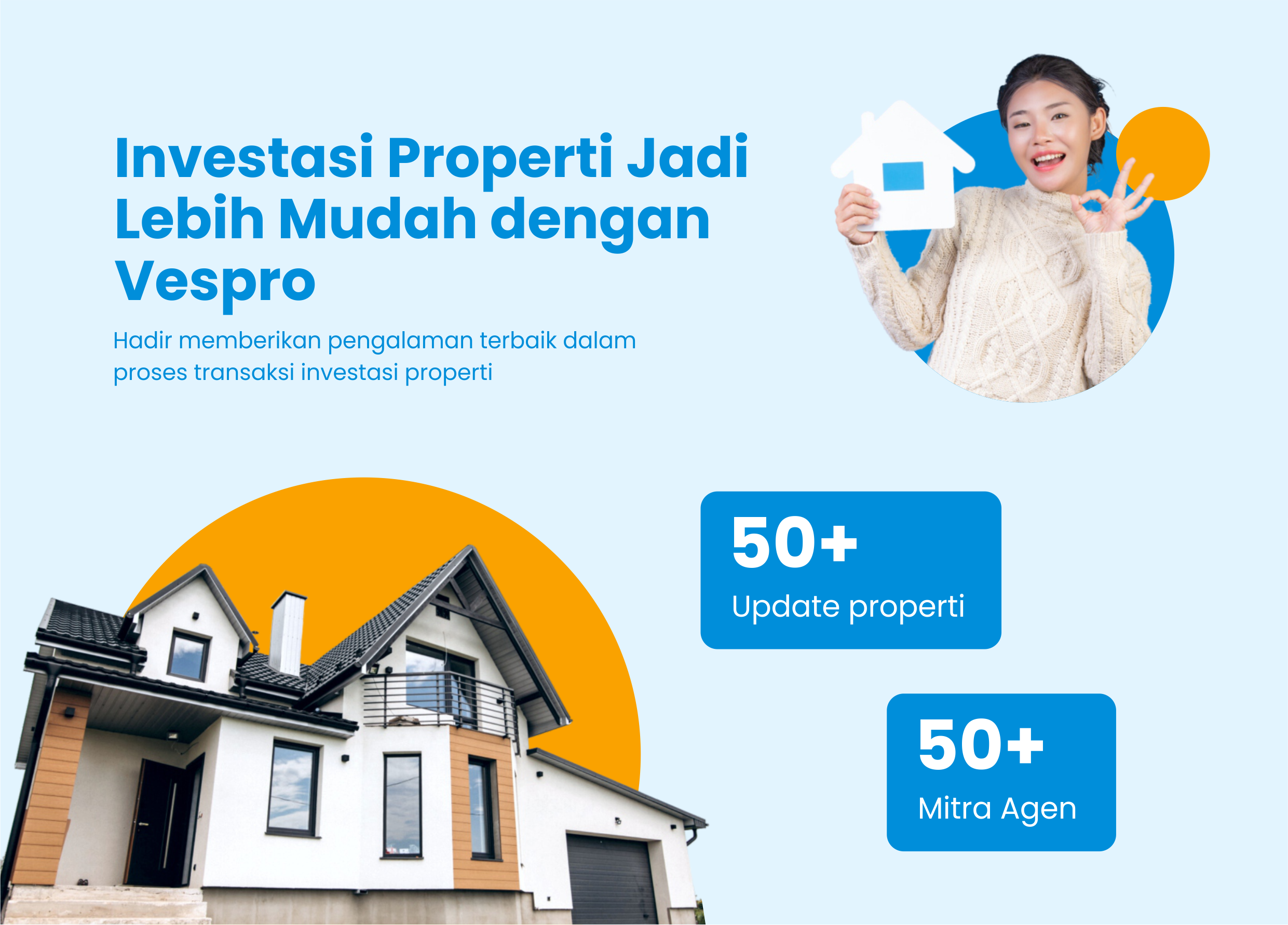 Melalui lebih dari 50+ unit properti, Vespro berkomitmen membantu masyarakat Indonesia melakukan traksaksi Jual Beli properti impiannya dengan mudah dan terpercaya. Dilengkapi dengan halaman berita dan rincian properti, Vespro menjadi sumber informasi yang lengkap dan terpercaya. Dengan bermitra bersama developer tepercaya dan agen properti profesional, Vespro menawarkan deretan unit properti yang menarik, dengan imbal hasil hingga 20% setiap tahunnya.